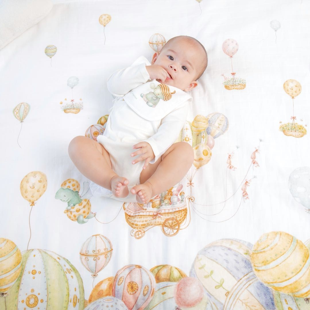 品牌随精神价值所呈现出的产品便是物理价值的体现。Moomaa的原创设计在不同产品的应用上也有着不同的意味。刺绣款包屁衣小型的花形更能衬托出小月龄宝宝最为纯净的样子,衣服只是衬托,宝宝才是故事的主角。大方巾根据其多样的使用场景,随时随地将宝宝置身于童话世界。连小小的口水巾,都充满了匠心意味,双面图案围绕在宝宝胸口,每一次擦拭,都是童话拂面。