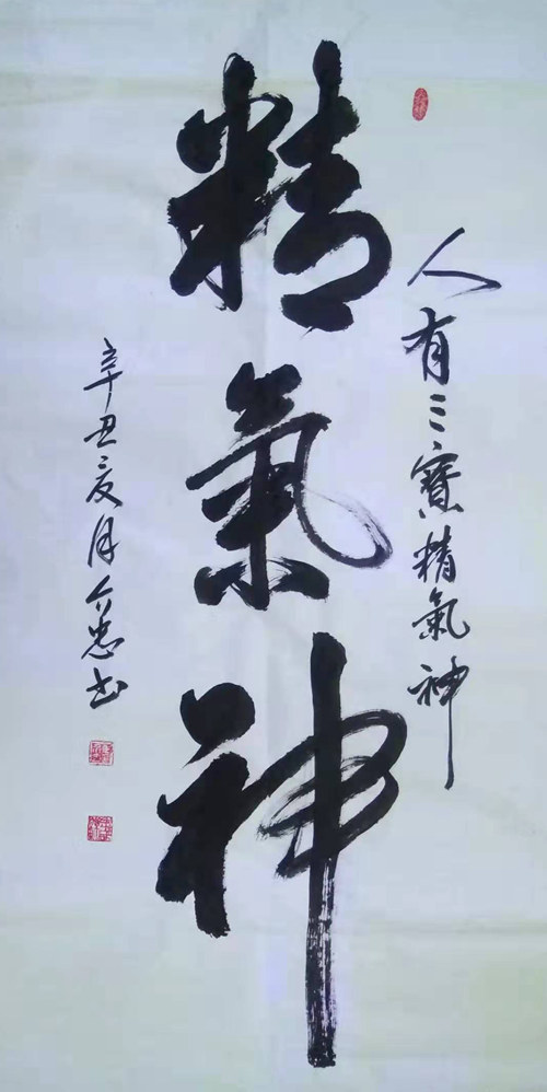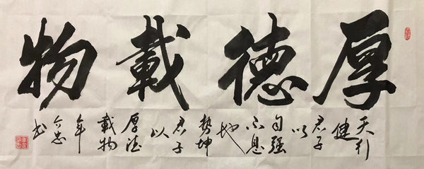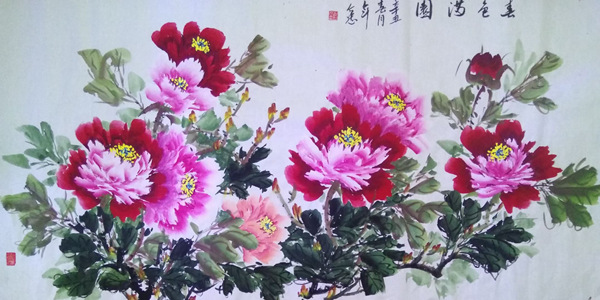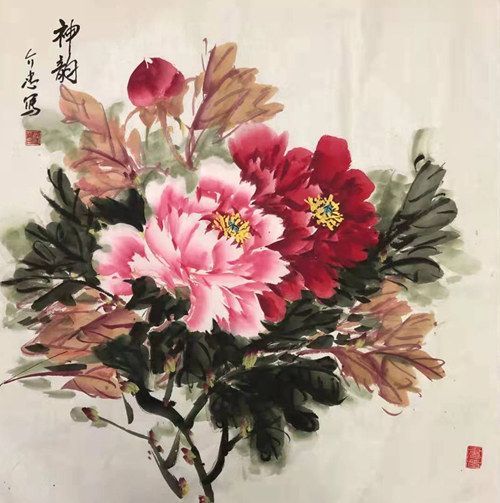 他告诉笔者,那时他家里的条件不是很好,根本买不起宣纸,一有空闲只能用树枝写手在田间地头比划,到了买得起纸的时候,往往一张宣纸正反面写上好几遍,舍不得丢弃!学校的校长孙树同见他如此痴迷书法,于是,把学校订阅的旧报纸,全让他拿去当练习纸用,这让他万分感激!书法也大有长进。1990年他创作的书法作品,曾获怀远县第一届教师节书画展览银奖;2007年本人又在蚌埠市第二届“珠城杯"少儿书法比赛中,获得了优秀教师辅导奖的荣誉。一个不懂得感恩的人,他的格局不会很大,其艺术之路也不会走得更远!年兄是一位懂得感恩的人,他深知“滴水之恩,当涌泉相报"对于帮助过他的人,他一定会永远记住別人的好!2017年,他的发小,时任中国国画院安徽分院院长的黄继飞,把他引入到省城合肥的书画圈,让他多交流互动!随后,同时又向中国国画院安徽分院的副院长张连胜等,学习国画牡丹的艺术创作,他更是如饥似渴的将自己的业余文化生活丰富在书画艺术的追求中,他先后临写过礼器碑、曹全碑、张迁碑、大字阴符经,圣教序、书谱卷,二王等帖。他的榜书,楷书,行书,隶书等书体,均受到了业内同行,社会各界收藏爱好者的广泛好评,其作品的受众与喜爱度不断被社会各界的友人、藏家与市场看好!