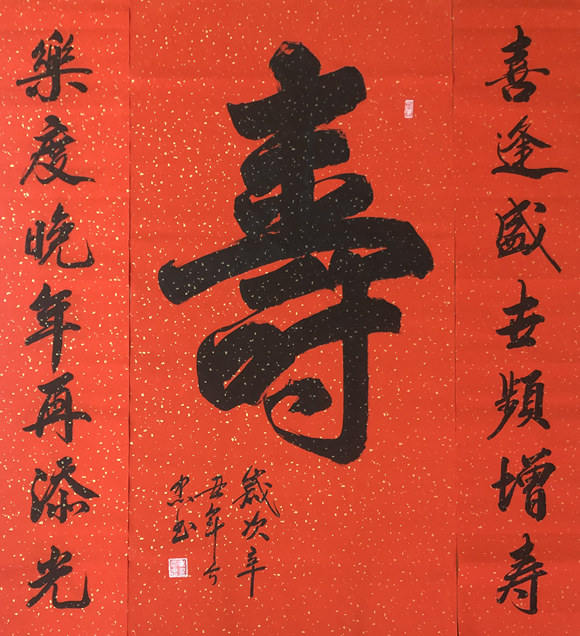 人与人之间的相处不仅要交心,更主要是谈得投机,合得上节拍,对得上脾气!其实,茫茫人海能偶遇几个志趣相投的书道之友,喝上三两杯的闲酒,品茶论道,品味生活,畅聊人生,何尝不让人快乐如意、分享与喜悦?!去年岁末,天鹅湖畔的星光荟,举办了一场春联现场书写活动,一位新面孔一一刚过花甲之年的书画家年介忠老师,走进了我视线……随后,经过几场笔会的交流与互动,逐步加深了对他的印象。再后来,就萌发了想要写一篇关于他如何走上书画艺术之路的文字!