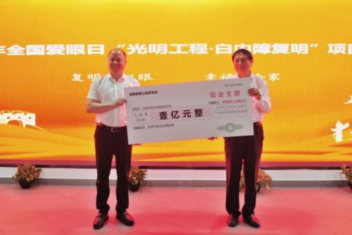 今年爱眼日“光明工程·白内障复明”项目座谈会上,爱尔眼科通过爱眼公益基金会捐赠1亿元助力乡村振兴