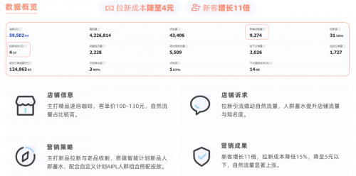 近期,齐心麦苗“省油智推”服务案例也成功入选阿里妈妈超级推荐淡季营销活动。齐心麦苗为天猫咖啡商家客户量身打造投放策略,店铺新客比上一周期增长11倍,店铺自然流量显著上涨。