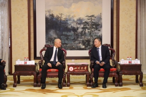 四川大学校长李言荣与陈邦董事长亲切交谈