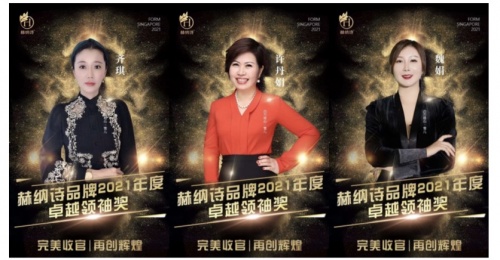 当天JRJ集团独具匠心,在云盛典现场安排了一个团队颁奖环节。吸引了线上的万人围观,集团董事长许少琴女士亲自对赫纳诗品牌2021年度卓越领袖奖:齐琪、Wendy Xu、魏娟3位老总给予认可与荣誉表彰。古语云:“巾帼不让须眉,红颜更胜儿郎。”英姿飒爽、意气风发、披荆斩棘,这便是她们!她们是赫纳诗品牌的荣耀,是所有赫纳诗人的标杆!每一个绞尽脑汁、用心布局的深夜,每一次认真聆听、用爱融化的真情,每一页每一章都印刻着成长的历程,你们始终如一坚定地向愿景前行。同时感谢赫纳诗品牌全球的家人们一路风雨同行,并肩作战,并且一直秉承“远播大爱,大美随行”的企业使命,成就自己,影响他人。坚持初心,为美丽事业奋斗。品牌的成长,离不开大家的努力和坚持!