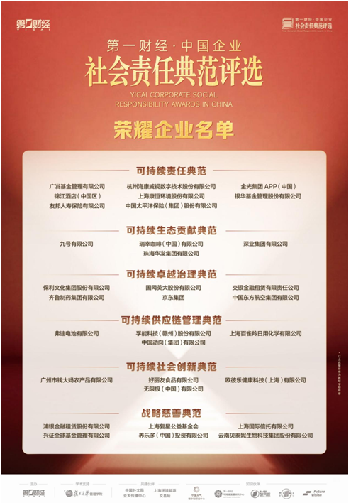 除了精彩的论坛环节外,现场还正式发布了本年度第一财经·中国企业社会责任典范,覆盖可持续责任典范、可持续生态贡献典范、战略慈善典范、可持续卓越治理典范、可持续供应链管理典范、可持续社会创新典范等多个维度。