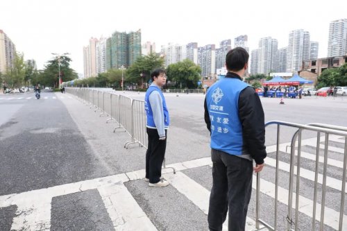 志愿者们引导观赛群众,在指定区域有序观赛,为过往市民提供路线指引,从源头保障赛道畅通,为参赛选手开辟“专属绿色通道”。