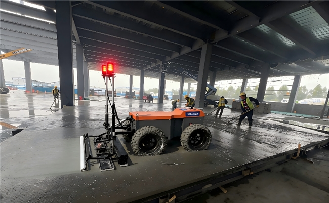 新能源厂房的特殊生产属性,对地坪的平整度、强度及耐久性提出了远超普通工业建筑的严苛要求。传统人工整平方式受人为操作误差影响大,难以保证施工精度的一致性,且效率低下,无法满足项目快速推进的需求。为此,项目团队经过多方调研与技术论证,最终选定地坪整平机器人承担2#厂房地坪施工任务。