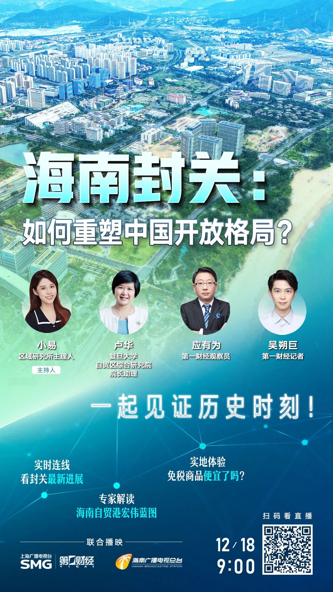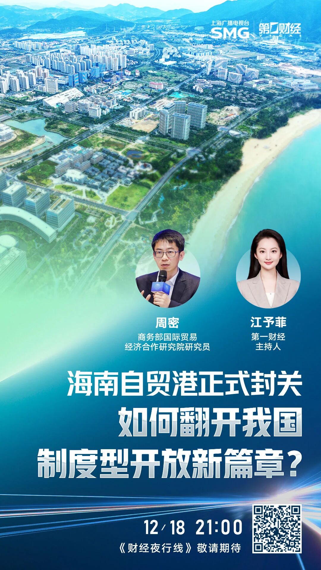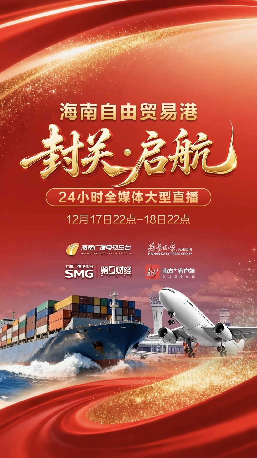海南自由贸易港今天(12月18日)正式启动全岛封关。从蓝图绘就到落地生根,历经多年筹备,海南成为中国第一个全面实施封关政策的自由贸易港。上海广播电视台旗下第一财经深度聚焦这一历史时刻,全程助力海南广播电视总台打造权威财经栏目《自贸港·财经视界》、举办“自贸沙龙”,推出封关首日的特别策划和大直播,全方位记录和见证随封关开启的中国对外开放新篇章。