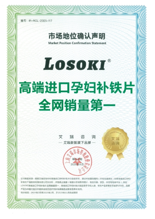 近日,艾瑞咨询基于对苏糖酸镁补镁片、高端孕妇补铁片、高端高含量护肝片和进口小分子胶原蛋白肽等多个行业的深入研究与技术分析,确认LOSOKI“苏糖酸镁补镁片全网销量第一”“高端高含量护肝片全网销量第一”“高端进口孕妇补铁片全网销量第一”“进口小分子胶原蛋白肽全网销量领先”的市场地位。艾瑞咨询通过严谨的行业调研、企业信息对比评估、专家访谈等多维研究方法,充分肯定了LOSOKI在健康消费领域强大的市场竞争力。
