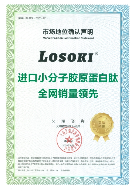从诺奖级科研合作,到专利成分积累与应用,再到产品矩阵化布局与全球化推进,LOSOKI凭借多维度综合优势,持续巩固其在精准营养领域的专业地位。其“科学循证、专利成分与应用场景相结合”的发展模式,不仅区别于传统泛化营养补充,也突破了单一功能导向的局限。艾瑞咨询的四项市场地位认证进一步确认了LOSOKI在多个细分品类中的领先表现,这既是对品牌科研与产品创新成果的肯定,也为整个精准营养行业树立了新的标杆。展望未来,LOSOKI将持续深化科研转化与细分领域布局,以更系统的产品结构和更广泛的市场覆盖,推动精准营养从通用补充向个体化健康管理升级。