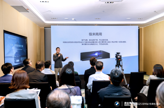 在 BMW 先锋私享会的主题分享环节,我们特邀极米科技创始人、董事长钟波亲临现场。作为智能投影领域的领军者、科技改变生活的践行者,他带领极米科技持续推动显示技术的创新与普及,将前沿光影技术融入万千家庭场景,让光影成为联结亲情的温情纽带,并不断推动行业标准的演进。