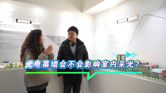 “光伏屋顶怕冰雹吗?下雨天会漏水吗?”在隆基绿能BIPV(光伏一体化建筑)体验馆,建筑光伏专家王祯与主持人一同站在屋顶的光伏板上,直面青少年最关心的问题。直播中,体验馆四面色彩斑斓的光电幕墙令人眼前一亮,彻底打破了光伏板“清一色是深色”的刻板印象,根据建筑风格的不同,可以定制不同色彩的光伏板,组成丰富多彩的建筑外墙,让光伏建筑兼具美观和实用性。王老师还用通俗易懂的语言解释了彩色光伏组件的发电原理、应用场景以及价值特点等,让大家对未来光伏建筑充满了更多想象。
