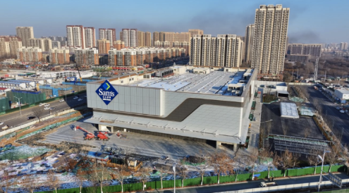 济南山姆会员商店是全省首批采用国家最新标准设计、施工、评价的三星级绿色建筑项目。项目主体结构全部采用绿色建材标识认证的建材,室内装饰装修使用超过5大类绿色建材,有效降低PM2.5等污染物浓度,主要空气污染物浓度比例降低25%以上。项目的卫生节水器具及风机、水泵、电机能效等级全部达到国家1级,建筑总能耗降低比例达33.86%,充分体现出城市更新中生态、节能、健康的高质量发展导向。