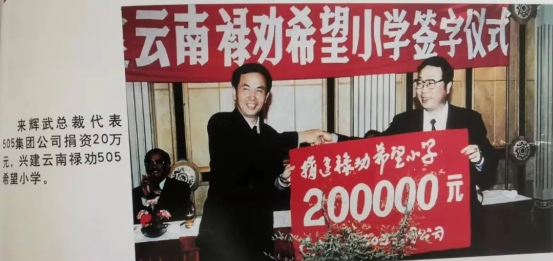 捐资200万元给希望工程,建八所希望小学,救助数千名失学儿童……