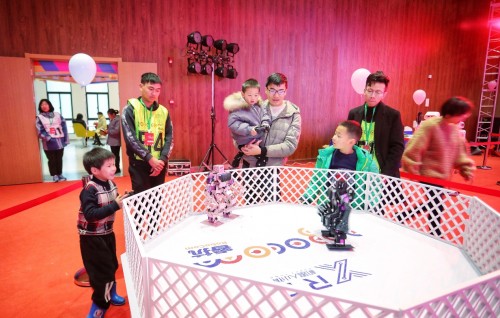 在春节即将来临之际,为萧山机器人小镇吸引人气、增添欢乐气氛,RoboCom国际公开赛组委会在标准赛项“铁血机甲”2020年互动挑战体验基础上,结合即将到来的春节,增设为期4天的体验感和娱乐性较强的“机器人乐园”体验活动,让普通老百姓能近距离感受和接触高科技的产品。乐园分为展示区、互动区、体验区三大区域,根据区域性质放置不同设备。
