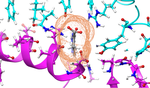 经计算,图中以灰色标示的化合物可与以蓝绿色标示的刺突蛋白 SARS-CoV-2 结合,从而阻止该蛋白与以紫色标示的受体—人血管紧张素转换酶 2(或称 ACE 2)进行对接。(图片资料来源:Micholas Smith/美国橡树岭国家实验室,美国能源部)(文章作者:IBM认知系统事业部技术计算副总裁 Dave Turek)