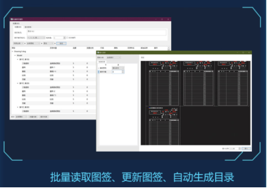 金曲CAD智能工具包V4.0设计师版精准打击这些令人头痛的重复琐碎工作,通过批量工具简化低效步骤,设计师只需点击批量读取图签功能,不用手动处理,工具包帮你自动批量识别、查找、替换并更新图签信息,大大节约了工作时间,提升工作效率。