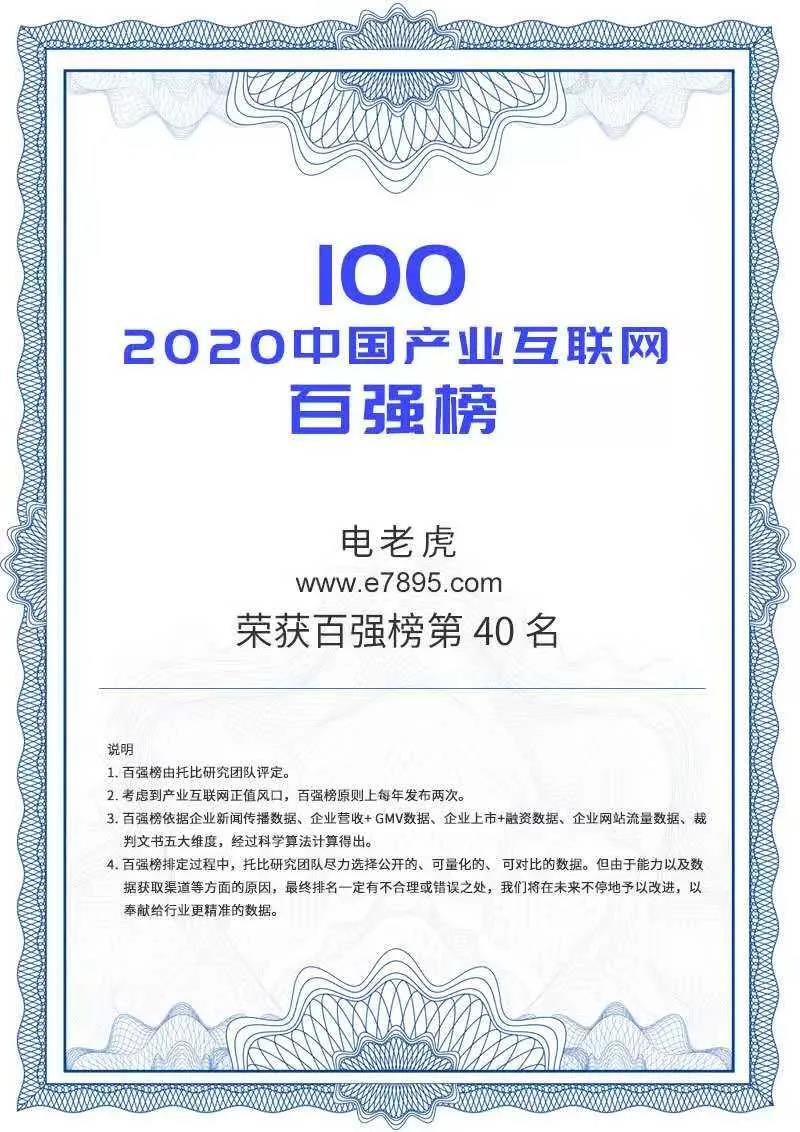 (百强榜单) 此次成功入选,感谢组委会和社会各界对电老虎赋能产业的认可,作为国内电力电气行业围绕“生产、流通、服务”三大板块,搭建互联网环节服务的平台,电老虎网一直致力于通过新技术、新模式以及个性化解决方案帮助企业进行产业数字化升级,拓展更多市场空间。 |