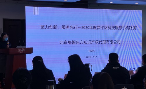 集智知识产权大客户部总监王晓玲代表公司进行了路演讲解,围绕基础工作、支撑系统、服务团队、服务企业、业绩、以及案例情况,国际合作、资质荣誉以及登记备案,昌平区活动组织以及主要贡献各个主题,向专家、企业代表以及去各级领导作为详细的汇报。