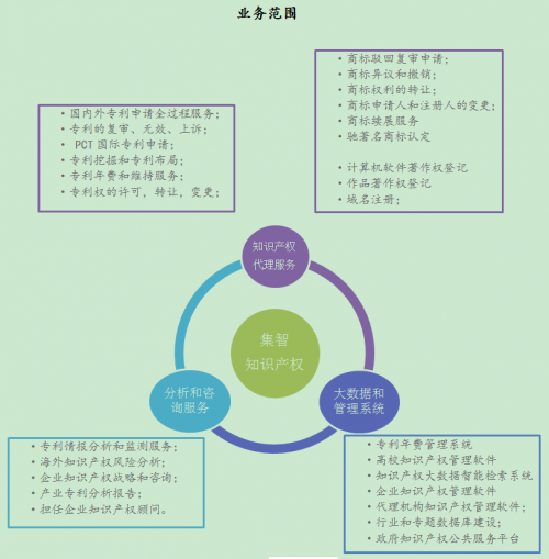 据了解,集智知识产权(专利代理机构代码 11578)是经国家知识产权局、国家工商行政管理总局批准设立的专利代理机构和商标代理机构,集团包括北京集智知识产权代理有限公司、北京集智东方知识产权代理有限公司、集智云(北京)科技有限公司以及首科创服(北京)科技发展有限公司。集智知识产权总部设在北京中关村昌平科技园区,此外,公司还在武汉市、成都市、天津市、芜湖市设立有分公司。公司成立以来,秉承着“以质量为先,与客户共赢”的理念,专门为国内外客户提供专利、商标、版权、计算机软件著作权、作品著作权、域名注册、不正当竞争、商业秘密、知识产权的管理和转让,知识产权咨询顾问等专业服务,我们还提供高校知识产权管理软件、企业知识产权管理软件、代理机构知识产权管理软件、行业专题数据库建设、产业专利分析报告、知识产权大数据检索和分析平台等。