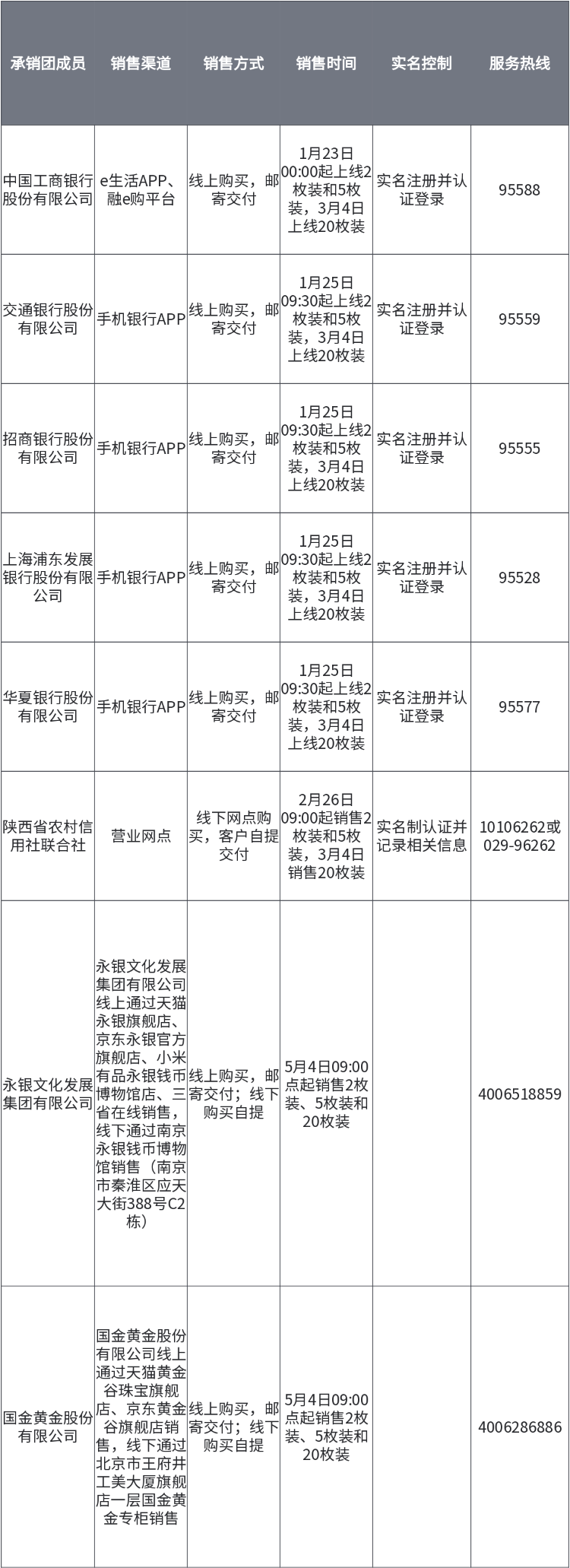 (二)为满足更多客户的购买需求,贺岁币装帧产品实行限额零售,每个规格单个客户单渠道限购数量见装帧规格及售价部分表述。