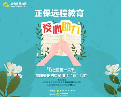 2019年,中国残疾人福利基金会联合正保远程教育等爱心企业在支付宝蚂蚁庄园公开募捐,共收集到1036525225颗爱心蛋,为全国40所盲校、有盲生的特教学校建立了盲文阅览室。