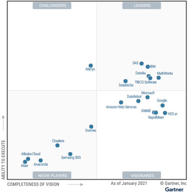 2021 年 Gartner 数据科学与机器学习平台魔力象限