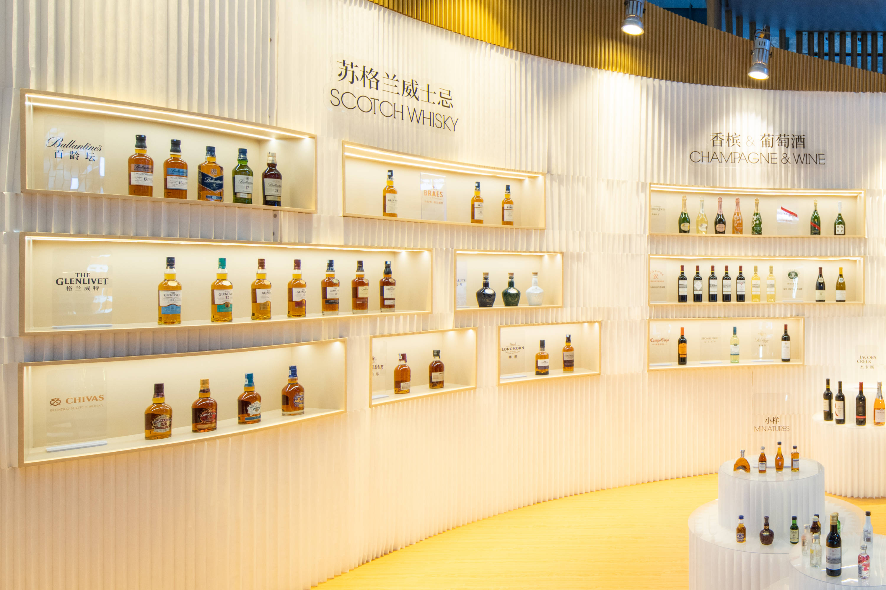 此次参展是保乐力加展出产品最多的一次,产品组合丰富多元,涵盖干邑、威士忌、伏特加、金酒、朗姆、力娇酒、香槟等葡萄酒和烈酒的所有主要类别。近年来,洋酒在中国市场受到越来越多的关注,消费者需求也日趋多元。保乐力加希望能够通过展示品类齐全的领先产品组合,为消费者提供更多产品选择,满足消费者在不同欢聚场景下对各细分品类多样化、多层次的需求。展台也为参观者提供多维度互动体验,在品鉴、试饮、盲盒抽取等互动中促成人们的欢聚,与大家一起分享真实的、有意义的欢聚时刻,展示集团“创享欢聚”的愿景。展台均由符合环保标准、可循环利用的材料搭建,所有品鉴杯和吸管都是可降解材料制成,点滴细微之处均将可持续发展的理念贯穿其中。