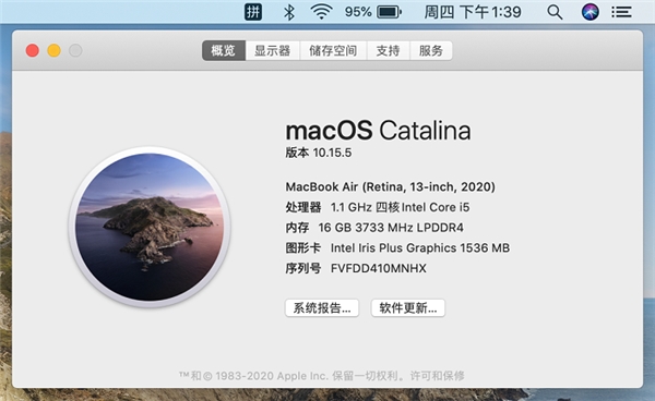 本次测试依然选用了 2020 款 MacBook Air(A2179)笔记本,并先后在 Windows 10 2004 和 macOS Catalina 平台下进行了跑分。