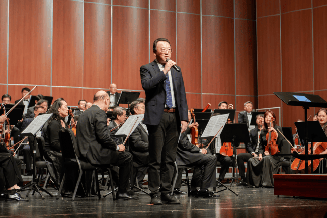 (音乐会总监张金春老师致辞:对这场音乐盛宴能够为公益事业助力感到无比欣慰。)