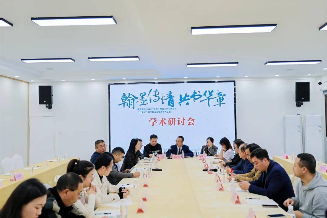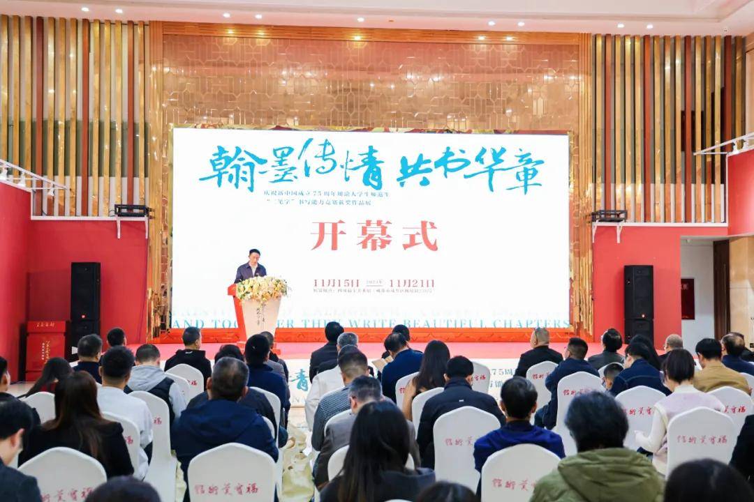 2024年11月15日,由四川民族学院主办,四川民族学院美术学院、国家语言文字推广基地(四川民族学院)承办的“翰墨传情,共书华章—庆祝新中国成立75周年川渝大学生师范生三笔字书写能力竞赛获奖作品展”在四川福宝美术馆隆重开幕。本次展览展出了来自川渝两地高校在“三笔字”书写能力竞赛中获奖的200余幅作品。