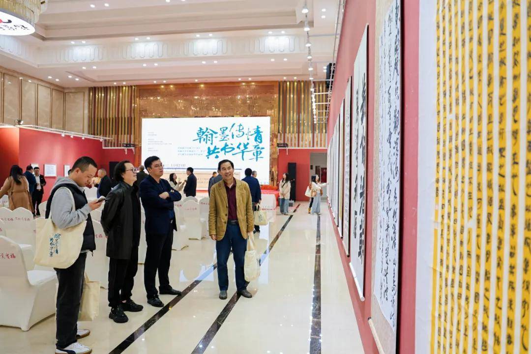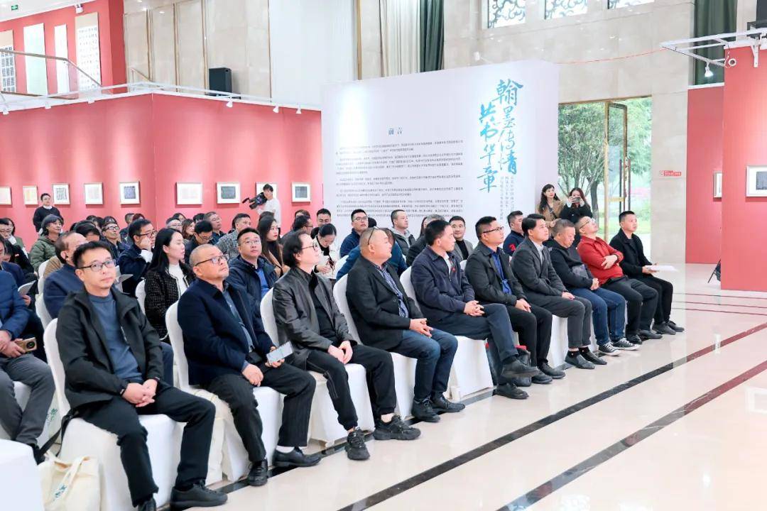 出席本次开幕式的领导及嘉宾有:四川民族学院党委副书记、校长郭庆义;四川省教育厅、语言文字教材处副处长李睿;四川省书法家协会副主席、篆刻委员会主任刘健;四川音乐学院成都美术学院教授、研究生教育中心副主任饶建华;成都师范学院美术学院、学术院长韩安荣;成都师范学院美术学院、副院长李茜;成都市书法家协会副主席成华区书法家协会主席代明道;绵阳师范学院美术学院副院长黄朝伟;成都艺术职业大学、环境艺术设计学院院长庄劲松;西华师范大学美术学院、副院长廖林;内江师范学院张大千美术学院、副院长高登明;四川旅游学院艺术学院副院长罗君;四川大学艺术学院绘画系副主任、书法专业负责人、书法硕士生导师刘志超;四川大学艺术学院副教授、书法研究所副所长、书法硕士生导师彭再生;四川大学艺术学院助理研究员艺术学博士、艺术学理论博士后于广华;四川师范大学美术书法学院书法系主任书法硕士生导师刘飞滨;四川师范大学美术书法学院教师、艺术学博士、书法硕士生导师高运刚;四川师范大学美术书法学院教师、书法学博士、书法硕士生导师刘虎林;成都大学副教授、书法硕士点负责人、书法硕士生导师蔡育坤;成都大学美术与设计学院教师、书法学博士、书法硕士生导师樊琪;四川省文联《现代艺术》杂志社总编辑、四川省文艺期刊联合会主席蒲秀政;四川省文艺评论家协会理事,新文艺群体专委会副主任胥勋池;中国书法家协会会员成华区书法家协会副主席、秘书长程星琰;中国书法家协会会员、成都市青羊区书协少儿艺委会秘书长彭春燕;乐山师范学院、美术与设计学院教授、美学博士书法硕士生导师吴胜景;乐山师范学院、美术与设计学院、书法系主任刘善军;四川文理学院副教授朱中原;四川文理学院书法专业教师陆峰;成都师范学院、美术与书法学系、副主任(主持工作)冯泽伟;成都师范学院书法学专业讲师、书法学教研室主任田莉莉;成都文理学院书法教研室负责人黄琴;成都文理学院副教授舒易团;中国书法家协会会员、成都工业学院教师高宏;中国书法家协会会员、成都市书协隶书委员会副秘书长、四川省科技与艺术融合发展促进会理事、副秘书长杨阳;阿坝师范学院美术学院、书法专业负责人罗永禄;四川省天府峨眉计划专家、四川省专家服务团专家、四川省科技与艺术促进会智库专家、副秘书长四川农业大学副教授宋畅;逸古书院创始人,四川文理学院、成都文理学院外聘教师王动;锦江区青少年宫、书法教师蒋文翌;温江区政通路小学、书法教师邓小雪;上海交通大学出版社刘莎;成都悯农原乡生态农业开发有限公司董事长万成月;成都经纬远腾科技有限公司顾问罗春平;四川栏格文化传播有限公司钟俊;四川民族学院审计处处长侯保民;四川民族学院教务处副处长向前;四川民族学院音乐舞蹈学院党委书记、院长安万明;四川民族学院美术学院党委书记邓竹佳;四川民族学院美术学院院长刘康杨以及各界嘉宾、参展作者、书法爱好者200余人。