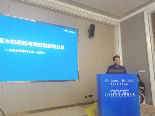 在“从森林到市场-构建可持续热带木材贸易供应链”中德非三方合作交流会上,张恩玖主席发表主旨演讲,系统阐述了久盛地板在绿色供应链建设中的实践成果。他指出,久盛地板通过构建“负责任、可持续”的绿色供应链体系,已与北美硬木板材协会、阿巴拉契亚硬木协会达成全面战略合作,实施严格的木材全流程追踪与材种实名制管理,确保100%进口木材来源合法可追溯。通过智能制造与绿色制造技术投入,久盛实现生产全流程清洁生产,形成资源集约、环境友好的生产模式。