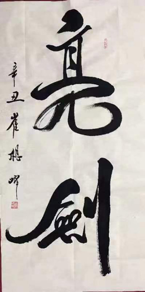 崔根峰将军还是著名的军旅书法家。他数十年坚持临帖,笔耕不辍。他曾为电视剧《亮剑》,《大墙无言》,《红色通缉令》,巜乡魂》和电影《暗剑》,《碧水丹心》,《大吏陈瑸》,《一线英雄》等10余部影视剧题写剧名。崔根峰将军书写的4尺“亮剑“,在2018年荣宝盛世拍卖中,和书画大师徐悲鸿的画作,排在一起,拍出了20万元的可喜高价,引起了很大反响。崔根峰将军还是清华大学美术学院书法高研班外聘教授。
