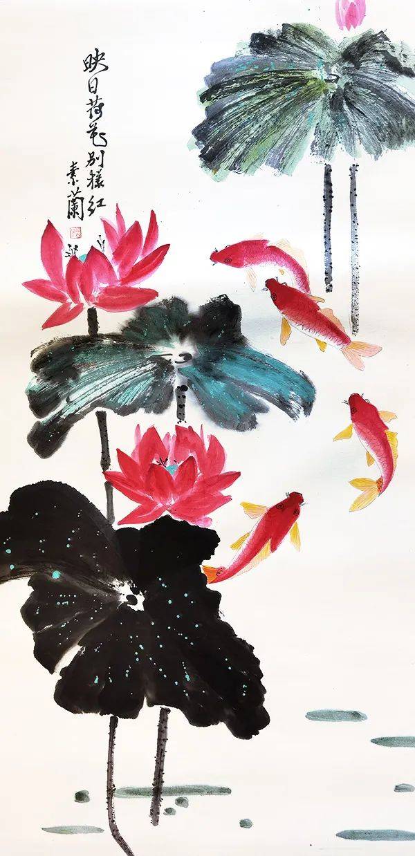解素兰心得造化,花叶于笔端舒卷,灵息若生。墨染浓淡,藏风隐光;色取深浅,幽韵自然。观者对卷,恍如行田园间,与山水草木同契,感其生机勃发,神游万物之境。荷姿高绝,简笔绘孤芳,风骨自显。叶展幽影,花吐清香,茎立风雨,韵藏千重。画中不露繁复,留白间意蕴无穷,观者凝目,心随画远,万象初始,清逸如新。