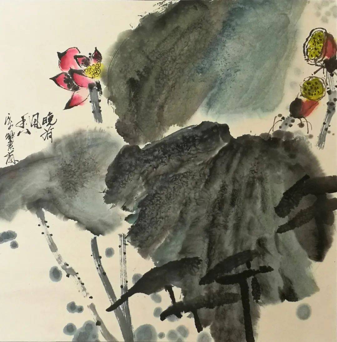 中国画《晚荷风香》 68㎝×68㎝ 2007年创作。2018年应邀法国美术家协会,参加法国巴黎国际艺术沙龙展,于卢浮宫卡鲁塞尔厅展出,获“沙龙奖”,还获得2023年国际美术竞赛(第二回)铜奖。