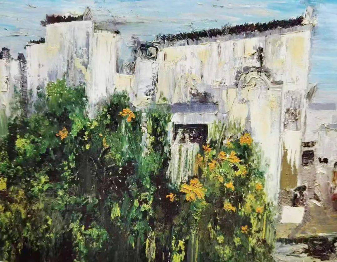解素兰绘油画,风物既得自然本真,亦添诗意余韵。色泽细腻,光影流转,平凡之景升华为灵动之境。山川林泉,皆蕴微妙生息;云霞风露,尽显造化神采。观其画,似临自然深处,意象幽远,情思无穷。其作光影错落,层次分明,解氏之油画于静中含动,于形外寄神。景物既具质感,又承意境追求,非写物象,乃传其魂。画中色彩张力与光线律动交织,情感与天地共鸣。观者对画而思,心神与之相契,目尽处,仿若桥连虚实,通向深邃无垠之境。