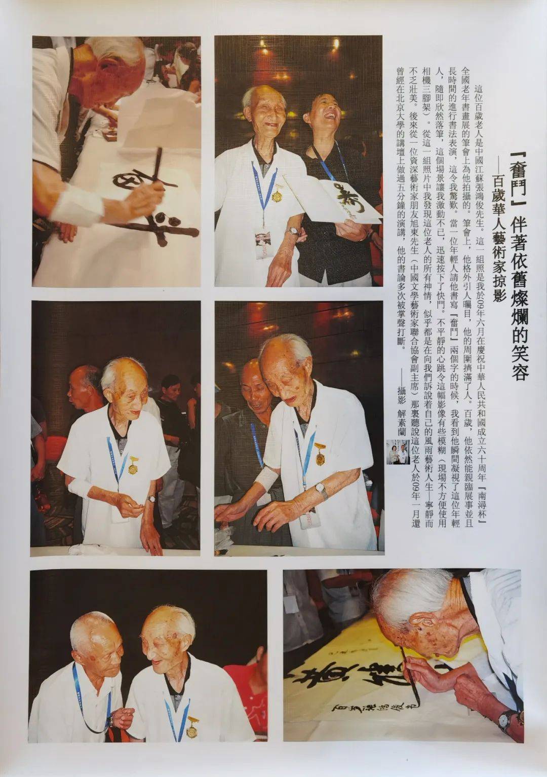 摄影作品《百岁华人艺术家掠影》 2009年创作 获紫荆花奖。获”世界华人功勋艺术家”称号