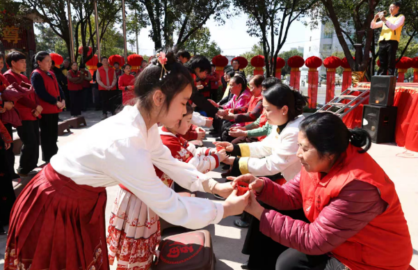 第三篇章“文化传承·互动共生”聚焦孝道文化的当代传播。孝亲故事分享环节,孝亲模范讲述自身践行孝道的真实经历,志愿者生动演绎三公主“红线助民、体恤苍生”的传说,让现场参与者深刻感受孝道的温暖与力量。非遗孝亲体验区里,香囊手作、孝亲寄语、孝道问答等互动活动精彩纷呈,参与者亲手制作祈福香囊赠予长辈,在寄语墙上写下对长辈的美好祝福,除香囊手作、孝亲寄语、孝道问答外,特别融入非遗米龙孝文化展示与体验,参与者可近距离观赏非遗米龙作品,感受传统非遗与孝道文化的深度融合;以非遗之礼寄孝亲之情,在趣味互动中深入了解三公主文化、闽地孝道习俗及非遗米龙文化的深厚底蕴,沉浸式感受传统文化的魅力。最后,全体参与者齐声祈福,共祝天下长辈福寿安康。